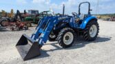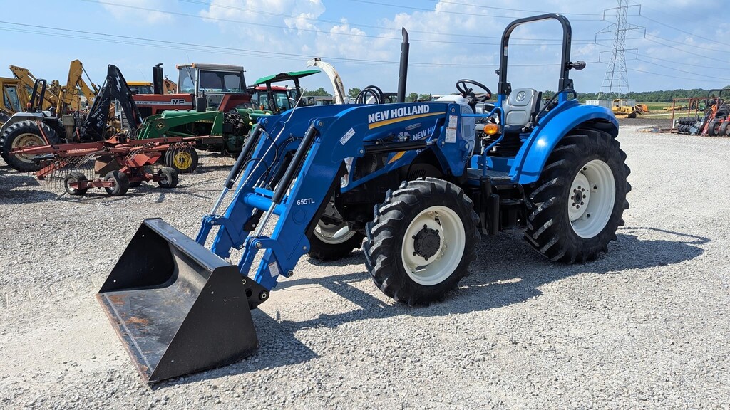 • New Holland 655TL loader with quick tach material bucket